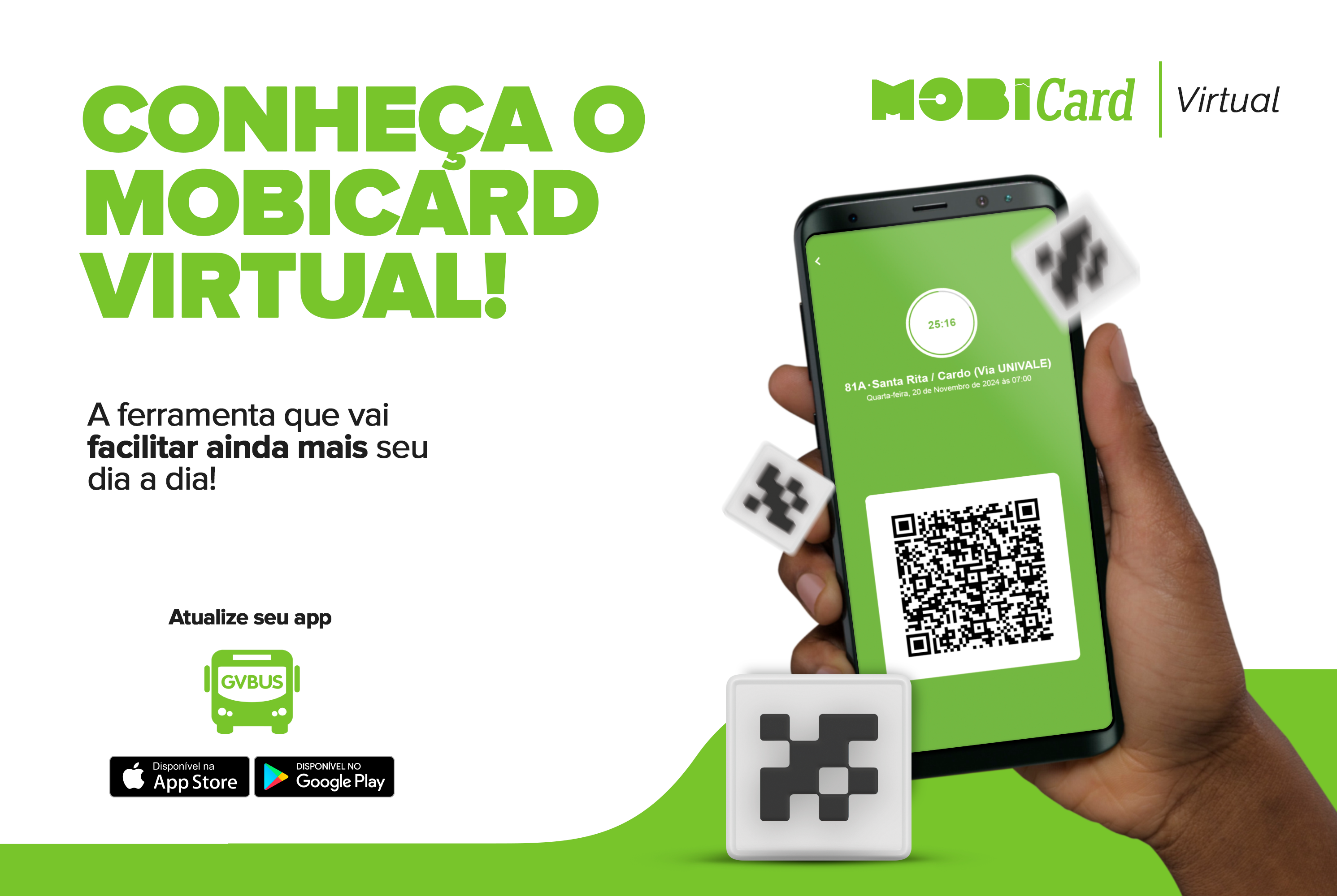 Para mais informações sobre o Cartão Virtual Mobi, acesse nosso site oficial em mobigv.com.br ou entre em contato pelo SAC: (33) 3212-9212.